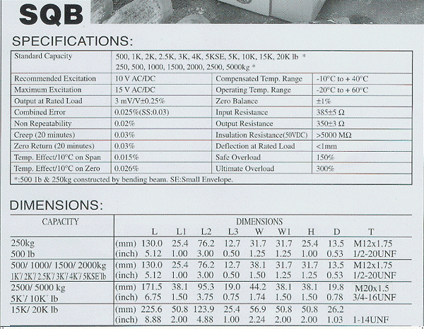 NTEP Class III 5000M 對(duì)于 SQB系列,SQB-F和SQB-SS可用于1k-10klb