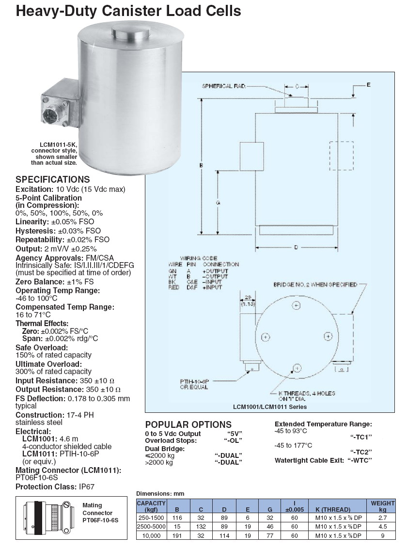 | 產(chǎn)品名稱:Omega LCM1001 柱式傳感器(load cells) |