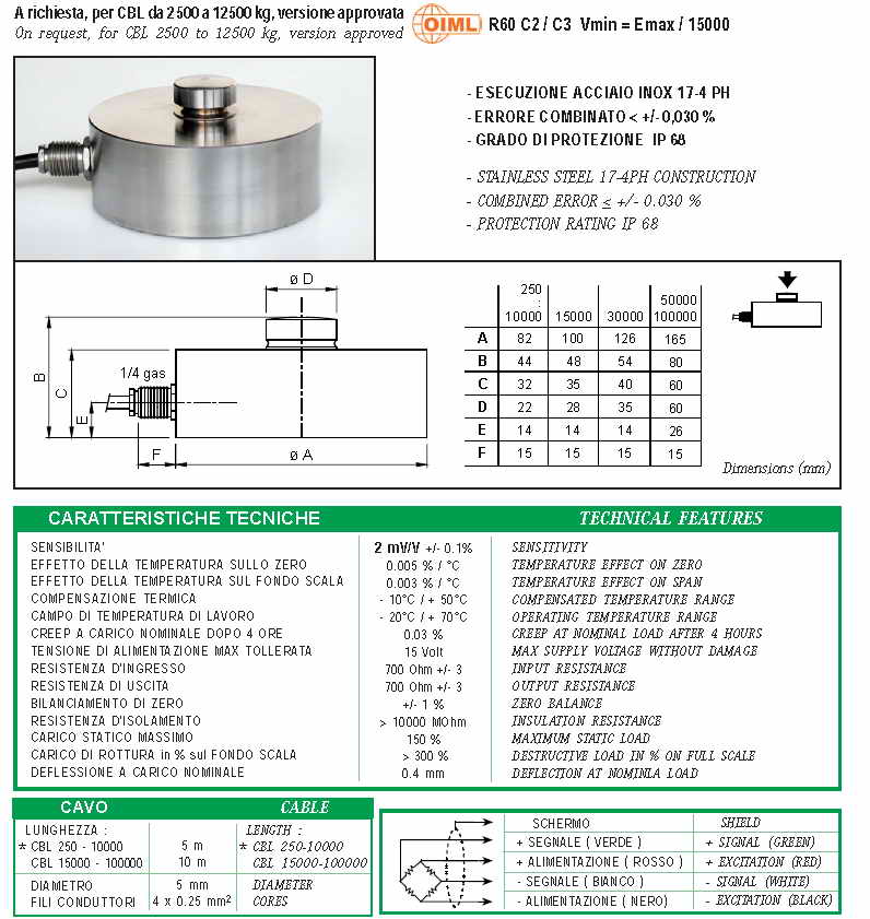 | 產(chǎn)品名稱(chēng):Laumas CBL 壓式稱(chēng)重傳感器(load cells) |