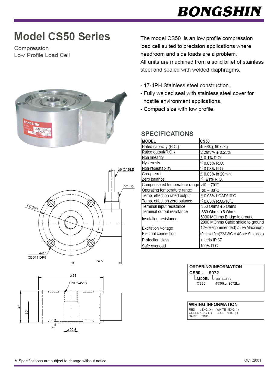 | 產(chǎn)品名稱:CS50 壓式稱重傳感器(load cell) |