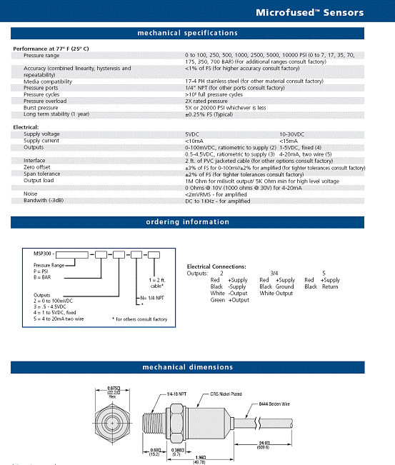 | 產(chǎn)品名稱:MSP-300 壓力傳感器(Pressure transducer) |