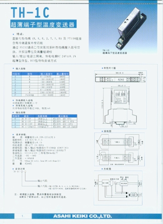 TH-1C 超薄端子型溫度變送器(Transmitter)