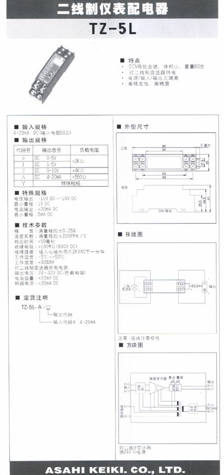 TZ-5L 二線制儀表配電器(transmitter)