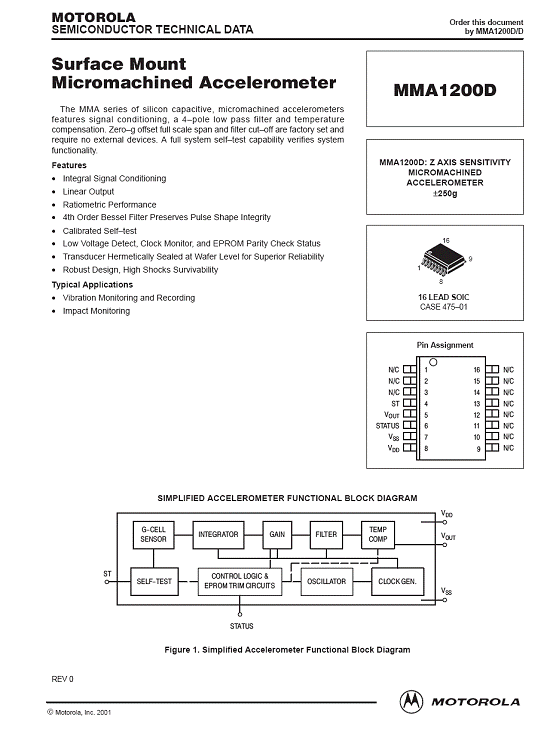 | 產(chǎn)品名稱:MMA1200D 加速度傳感器(accelerometer) |