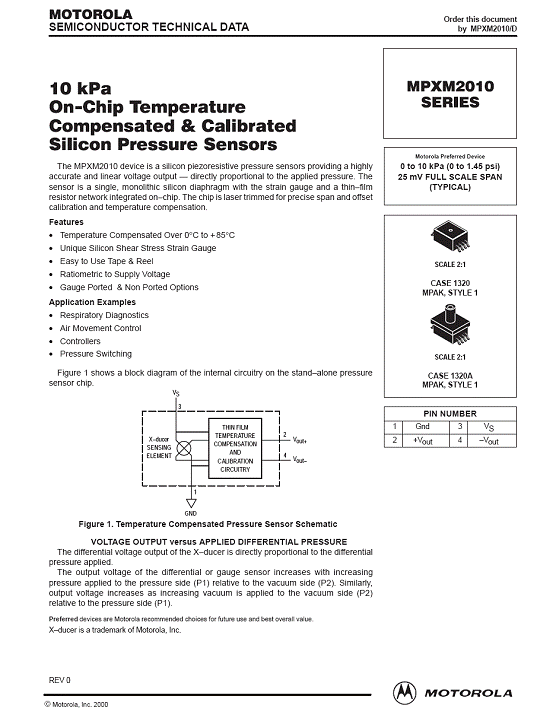 MPXM2010 氣壓傳感器(sensor)