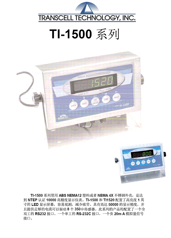 | 產(chǎn)品名稱:Transcell T1-1500 高精度顯示儀表(Indicator) |