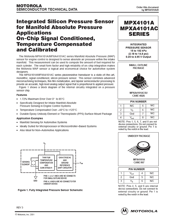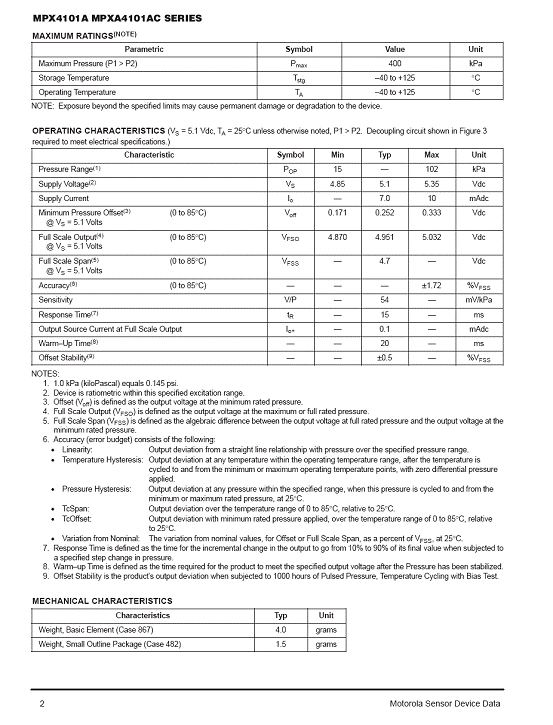 | 產(chǎn)品名稱:MPX4101A 氣壓傳感器(sensor) |