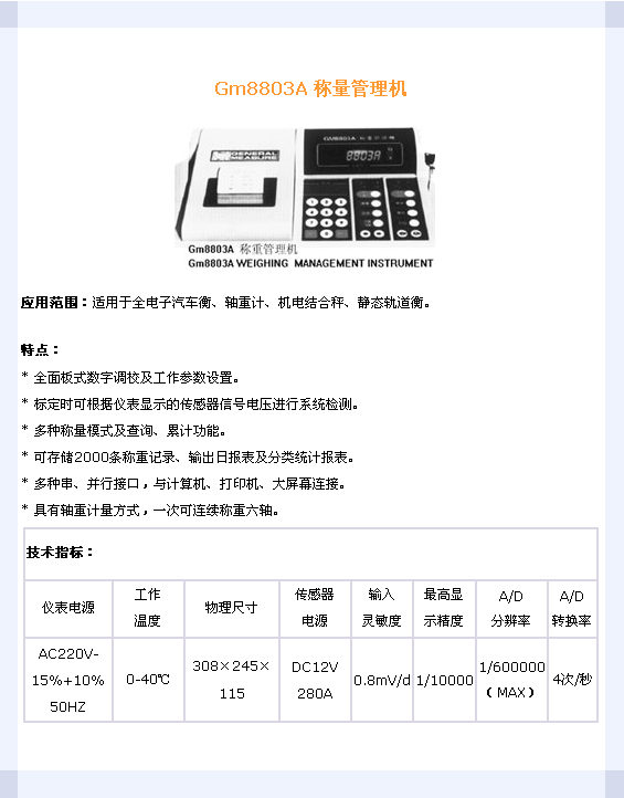Gm8803A 稱量管理機(jī)(Indicator)